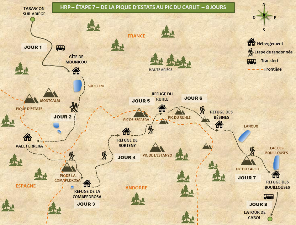 Préparez-vous à vivre une aventure inoubliable au cœur des Pyrénées, entre France, Espagne et le petit État d’Andorre. Durant 8 jours de randonnée, vous explorerez les sentiers les plus sauvages de la chaîne, à la découverte de paysages époustouflants, de lacs d’altitude et de sommets emblématiques.