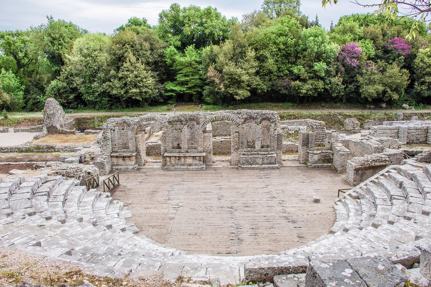 Direction Butrint, site UNESCO alliant ruines antiques (théâtre grec, bains romains, basilique byzantine) et nature préservée au bord du lac et de la mer Ionienne. Puis route vers Saranda, perle balnéaire de la Riviera albanaise, réputée pour son ambiance exotique et son histoire liée aux quarante martyrs. Temps libre pour découvrir la ville